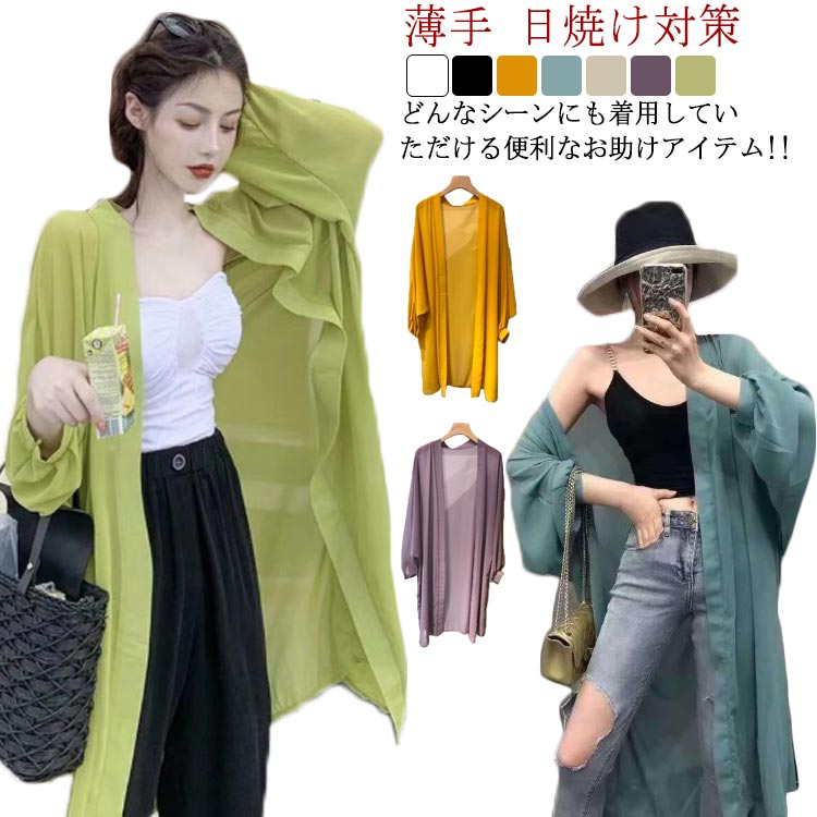 送料無料 全6色×6サイズ!ロングカーディガン 春夏 薄手 軽い サマー カーディガン シフォン シ …
