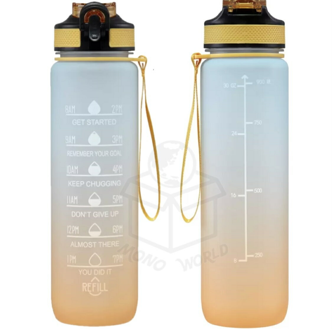 モチベーショナル ボトル メモリ付水筒 約887ml イエロー 黄色 yellow 水筒 モチベーショナルボトル 水 1時間毎のタイムマーカー付き 水分補給 水分摂取量測定 ヨガ ジム スポーツ 宅トレ トレーニング ★