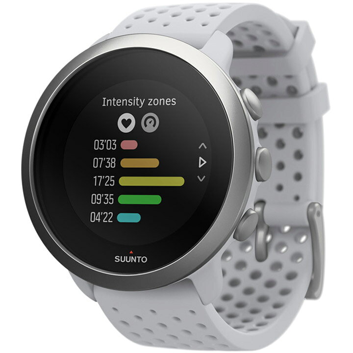 スポーツウォッチ SUUNTO スント SUUNTO 3 【製品仕様】 コードNo SUUNTO 3 カテゴリ スポーツウォッチ/スマートウォッチ ベゼル素材 ステンレススチール レンズ素材 ポリアミド ケース素材 ABS ストラップ素材 シリコン サイズ 43×43×14.3mm / 1.69×1.69×0.56" 重量 36g / 1.27oz ストラップ幅 20mm 手首周り 120〜210mm 耐水設計 30m 表示解像度 218×218 バッテリー駆動時間 GPSを使用しないトレーニングモード:最大40時間毎日24時間の追跡およびモバイル通知:最大5日間タイムモード:最大10日間GPSを使用するトレーニングモード:最大30時間(コネクテッドGPS使用時) 付属品 Suunto 3充電ケーブルクイックガイド保証書 ご留意点 スマートウォッチは、その製品の特性上、店舗での商品検品ができません。