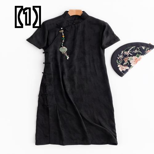 チャイナドレス ロング おしゃれ シンプル 黒 花柄 半袖 レディース 春夏 大きいサイズ 華やか シック 大人 ナチュラル ワンピース 衣装