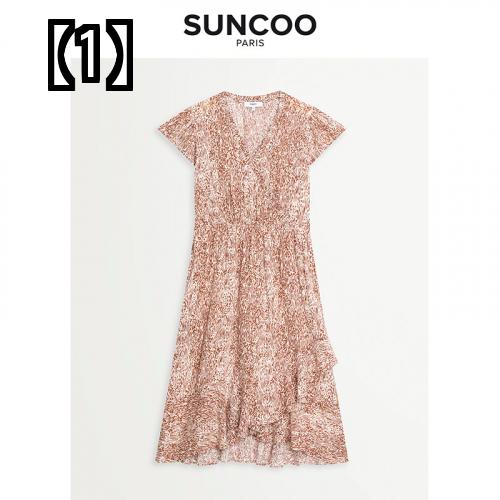 ボヘミアン ワンピース 夏 レディース 海 ビーチ 緑 ピンク ショート 花柄 おしゃれ 半袖 Vネック aライン ボリューム袖