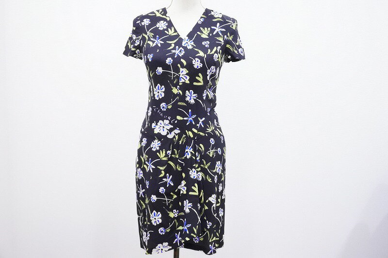 [USED/中古]CHANEL シャネル ワンピース エレガント花柄ワンピース ヴィンテージ ブラック×ブルー×ホワイト×花 シルクワンピ シルク 38 Bランク【中古】