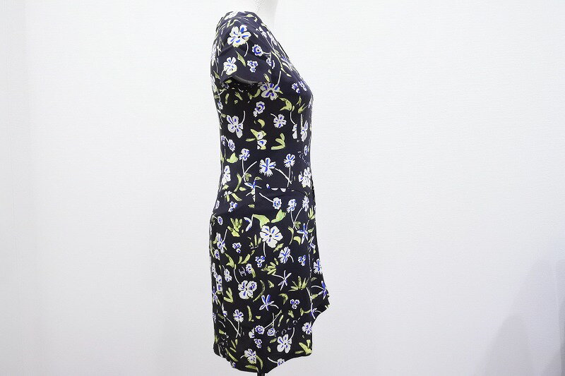 [USED/中古]CHANEL シャネル ワンピース エレガント花柄ワンピース ヴィンテージ ブラック×ブルー×ホワイト×花 シルクワンピ シルク 38 Bランク【中古】