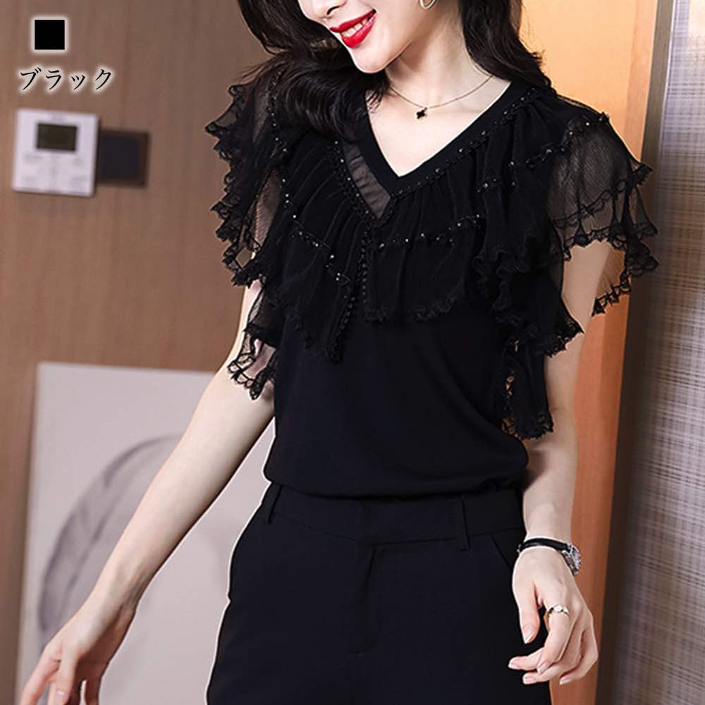 【商品名】Vネックフリルシアーブラウス【カラー】ブラック【サイズ】S M L XL 2XL【サイズ表記】・Sサイズ:着丈55 身幅72・Mサイズ:着丈56 身幅76・Lサイズ:着丈57 身幅80・XLサイズ:着丈58 身幅84・2XLサイズ:着丈59 身幅88【素材】コットンブレンド【季節】コットンブレンド【スタッフコメント】洗練された雰囲気漂うシアーブラウス。