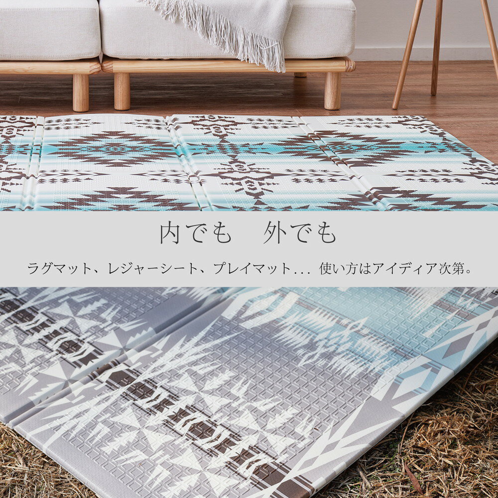 レジャーシート 178cm × 196cm プレイマット クッションマット アウトドア キャンプ グランピング 遠足 子ども ペット 運動会 キリム柄 撥水 コンパクト 収納 お手入れ簡単 専用収納バッグ付
