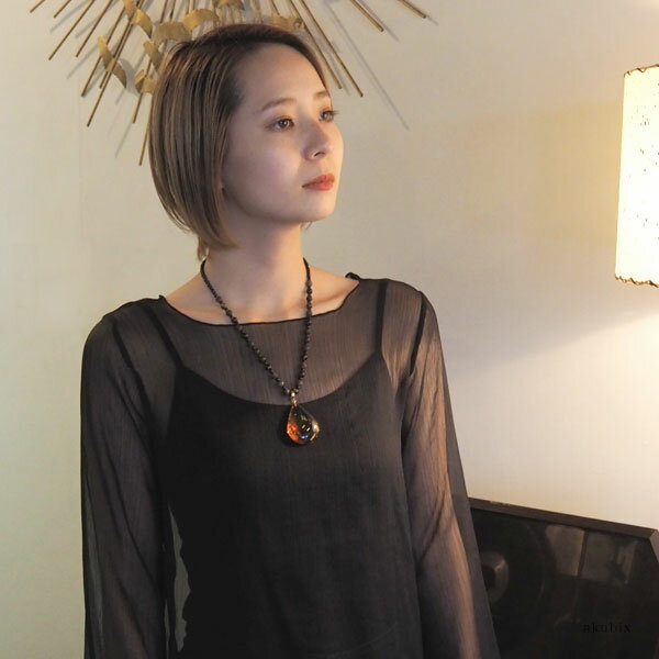 様々な内包物が楽しめる琥珀ルースをトップに使い グレイ&ブラックの7mm琥珀粒とオニキスを 連ねたシックなネックレスを合わせました。