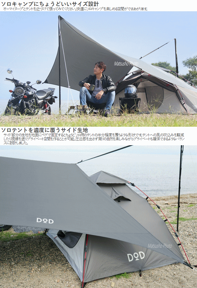 ソロ用テントと一緒に使った時に快適なキャンプができるよう工夫をこらしています。