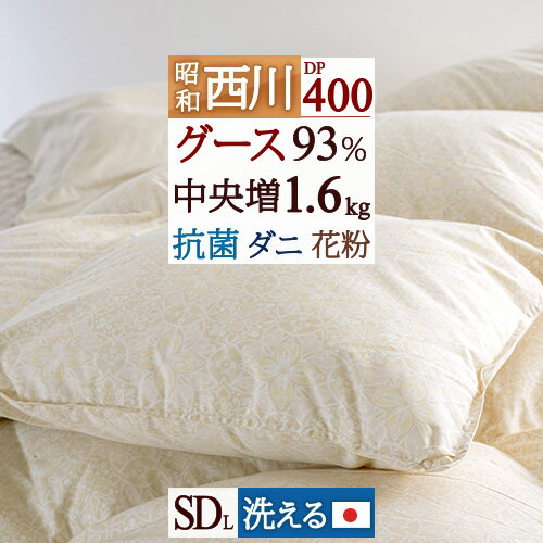 節約大作戦★1,500円クーポン★8/26AM迄 西川 羽毛布団 セミダブル グース 【西川掛布団カバー特典付】 ホワイトグースダウン90% DP400 とっても暖か『増量1.6kg』 軽量生地 抗菌 ダニプルーフ 日本製 昭和西川 羽毛掛け布団 羽毛ふとん セミダブルロングサイズ