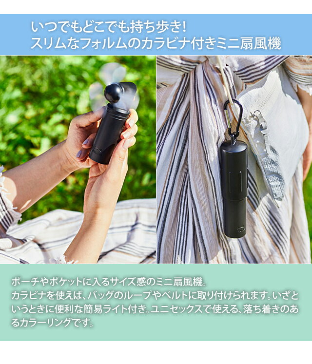 【送料無料】特価!ミニ扇風機 ハンディ USB 充電式 充電器 ポータブル 携帯 ハンディファン 卓上 ミニファン・モバイルバッテリー・簡易ライト 3WAY カラビナ付き BRUNO ブルーノ コンパクトスティックライトファン BDE042 1年保証(id0a238)