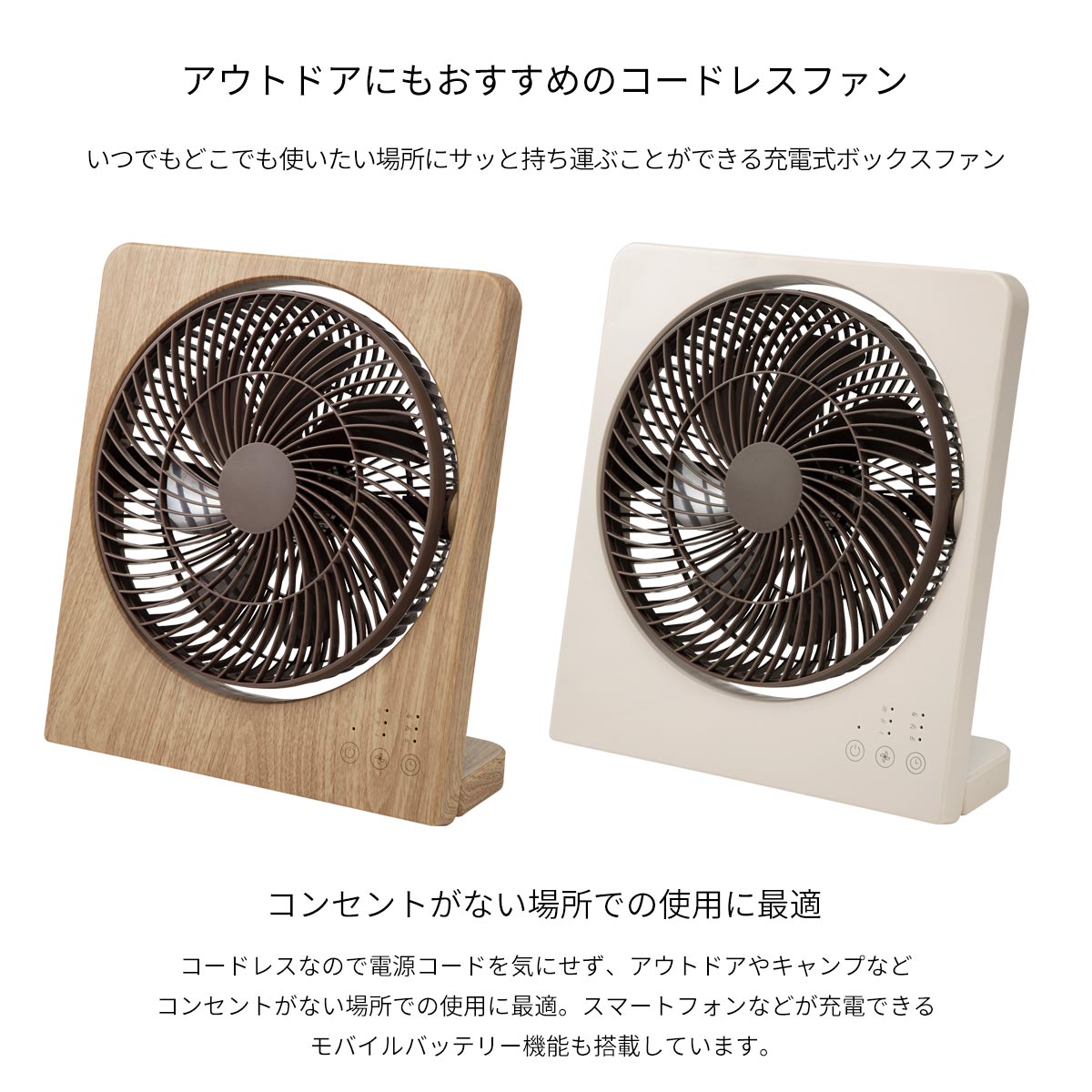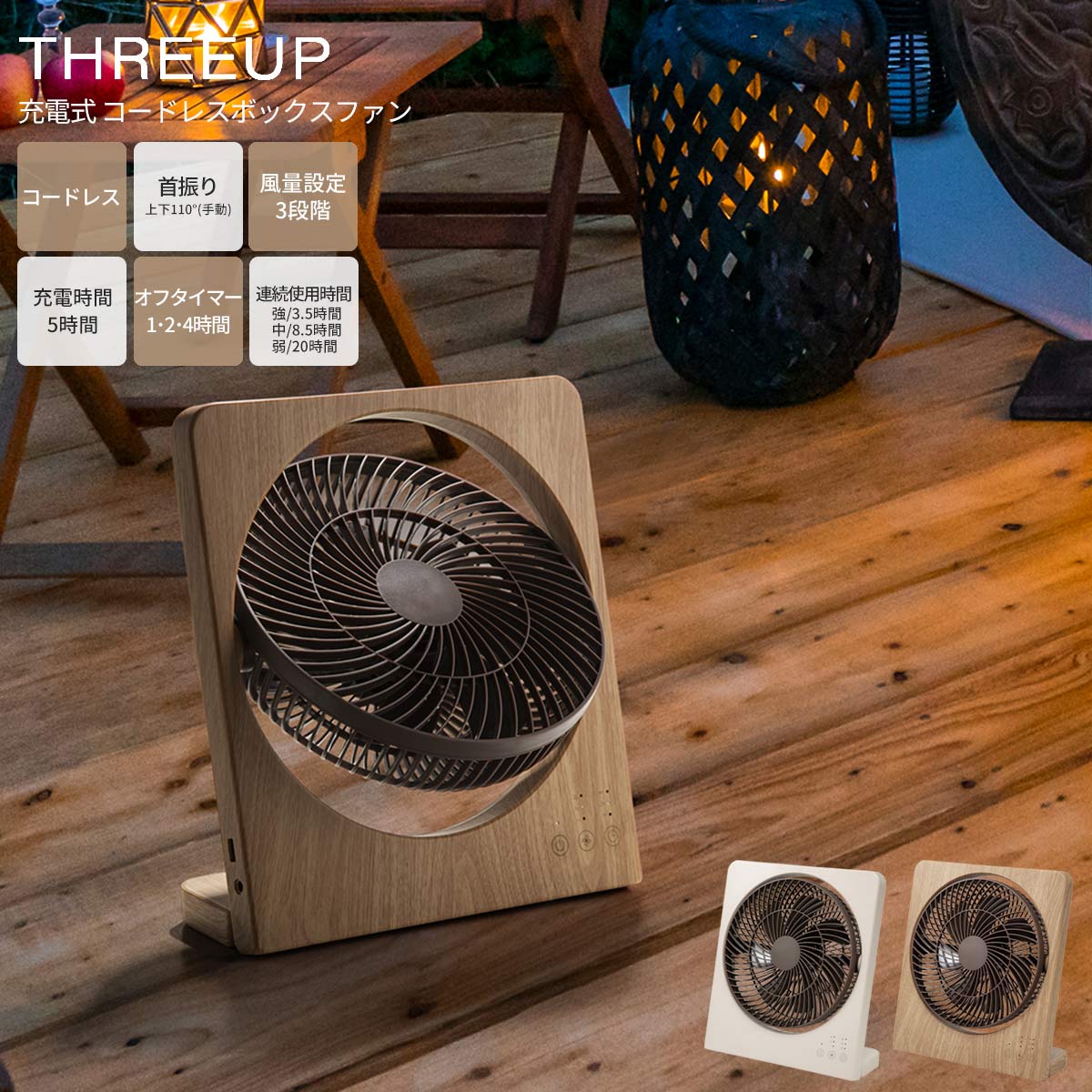 充電式 コードレスボックスファン 充電式 スマートフォン充電 アウトドア 野外 車内 おしゃれ 空気循環 風量設定 オフタイマー機能 リビング 寝室 キッチン 脱衣所 冷暖房 暖房 効率アップ 扇風機 THREEUP スリーアップ メーカー保証1年 【PUP01】 新生活